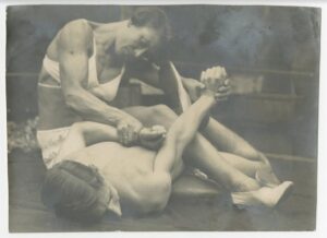 After being crowned the strongest women in England following her competition with Tillie Tinmouth, Ivy sought out further challenge in the ring as a wrestler. Here again she issued a challenge which in 1934 was accepted by Miss Peggy Parnell. Parnell was a more experienced wrestler but was also a full 6 inches shorter and lighter than Ivy. Prior to the match, she was quoted as saying “I am banking on my superior experience beating Miss Russell’s physical advantages,” however her experience would not prove to be up to the challenge. Ivy was able to achieve 2 out of the 3 planned submissions in less than 10 minutes, making her the first female wrestling champion of Britain.